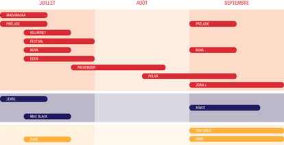 Les périodes de récoltes sont sujettes à changement en fonction de la météo. N'hésitez pas à nous appeler pour avoir l'heure juste !